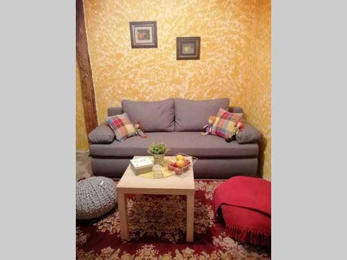 Poseduje hodnik, dnevnu sobu sa trpezarijom i kuhinjom, u kojoj se nalazi kamin i trosed na razvlacenje, spavacu sobu sa francuskim lezajem i kupatilo.
