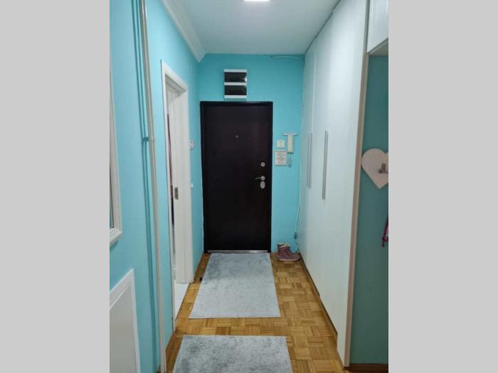 Stan je na višoj spratnosti, 15/17 spratu, što ga čini izuzetnim jer nema ni muva, ni komaraca na terasi kao ni u samom stanu. Stan je istočno orijentisan. Redovan dvosoban stan od 60m2. U sve prostorije se ide iz hodnika. Sačinjavaju ga sledeće prostorije: ulazni hodnik, kupatilo, spavaća soba, veliki dnevni boravak, trpezarija iz koje imaju vrata za mali špajz, ogromna kuhinja, terasa velika i veliki špajz.