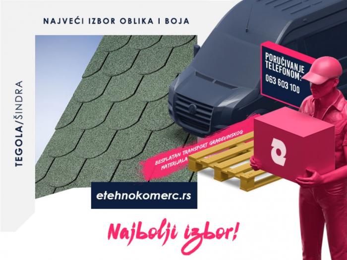 Jedinstvena prilika za kupovinu prvoklasne tegole po najpovoljnijoj ceni na našem tržištu. Iskoristite neponovljivu priliku za vrhunsku tegolu koja će krasiti Vaš krov.br /br /Samolepljiva bitumenska krovna šindra (2/3 površine je samolepljivo), heksagonalnog oblika. Posebno površinsko senčenje, sa granulama boje kedra, čine bilo koju krovnu površinu gracioznom. Dugotrajna zaštita je osigurana primenom teške osnove od staklenih vlakana, sa obostranim premazom na bazi modifikovanog bitumena. Armour Shield šindra je posebno namenjena za vetrovite oblasti - primena omogućava vertikalno postavljanje do neverovatnih 90.br /br /Karakteristike: samolepljiva šindra , može se primenjivati na kosim krovovima, odlična zaštita naspram vetrom nošene kiše i ledenih brana, izvrsna otpornost jakim vetrovima, ekonomičnija prilikom postavljanja na krovovima sa manjim nagibima (do 15 ).br /br /Dužina: 1000 mm ( 3)br /Širina: 318 mm ( 3)br /Težina: 9,2 kg/mbr /br /Proizvođač: IKO, Belgija.br /br /br /Posedujemo sav prateći program za ugradnju tegole.br /br /Mogućnost besplatne isporuke za veće poručene količine – ukoliko ste u prilici da lično preuzmete krovni pokrivač, dobijate poklon bon sa 5 popusta na planiranu kupovinu.Tegola je vrsta fleksibilnog krovnog pokrivača, koji se odlikuje izuzetnim estetskim izgledom i lakoćom. Najidealnija je za primenu na krovovima sa krajnje ograničenom nosivošću. Tegola kao krovni pokrivač naročito dolazi do izražaja prilikom pokrivanja visokih i složenih krovova. Brzo se ugrađuje, zahvaljujući optimizovanoj težini i prilagodljivosti.