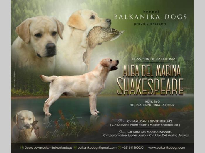 Otac Alba Del Marina Shakespeare (5, CH Macedonian,CH Montenegro, CH Bosnia and Herzegovina, Open CH Serbia, Open Inter Ch, 4x CACIB, 2xR. CACIB, 7xCAC..., HDB, ED 0, IUO).