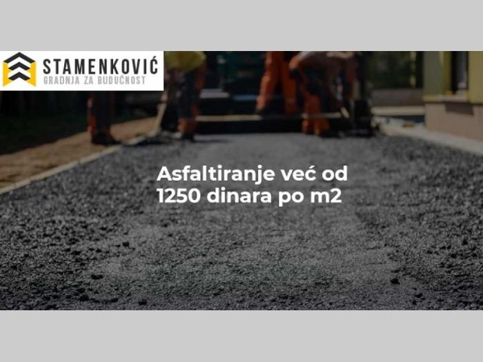 Asfaltiranje manjih površina, uređenje terena oko objekata. Asfaltiranje i pripremni radovi,postavljanje ivičnjaka, uređenje dvorišta,posedujemo kompletnu mehanizaciju. Vršimo izradu ležećih policajaca, nasipanje grebanog asaflta.