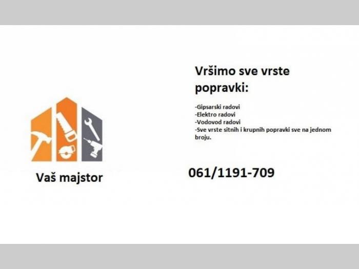 Vršimo sve vrste popravki: gipsarski radovi, vodovodni radovi, elektro radovi, sve vrste krupnih i sitnih popravki na jednom mestu.