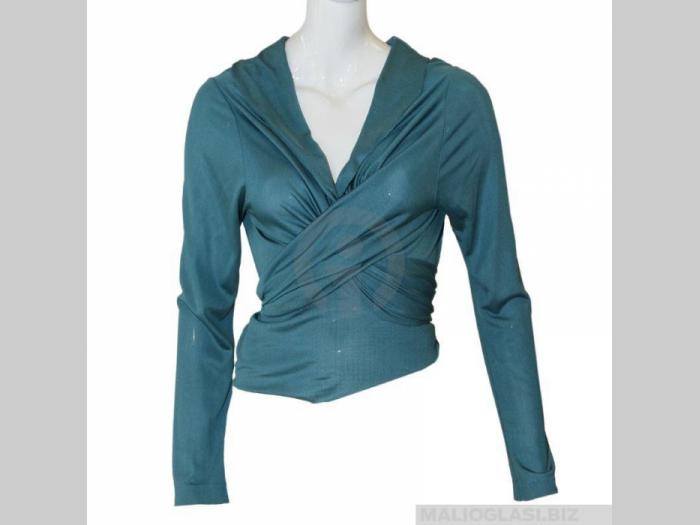 Zenska bluza na prekop.Vezivanjem na razlicite nacine,mozete imati 3 modela ove bluze.Velicina univerzalna.Dostupna u plavoj,koralno crvenoj i svetlo zutoj boji.Sastav pamuk,svila i likra.