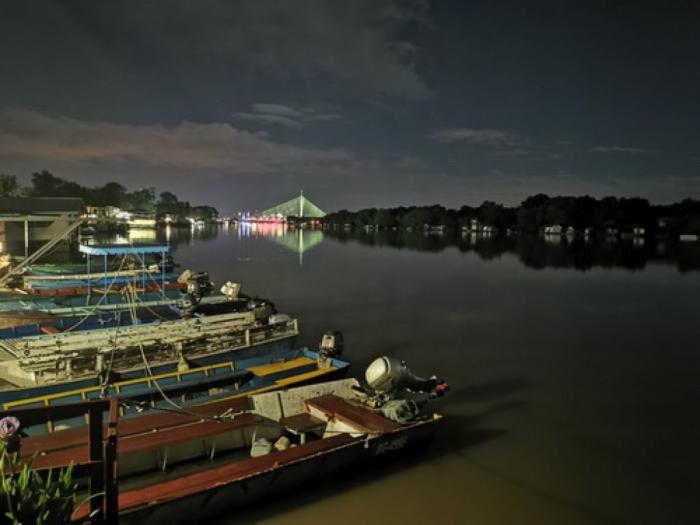 Objekat poseduje 350 m2 + 360 m2 terase, pravljen na pontonima. Zauzima 63 m obale.