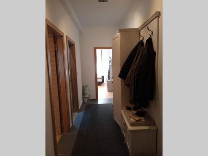 Izdajem stan ima 50 m2, visoko prizemlje, dvosoban, kuhinja sa dnevnim boravkom i spavaćom sobom, kupatilom i terasom, centralno grejanje i klima, izdaje se potpuno namešten, novogradnja iz 2020. god.