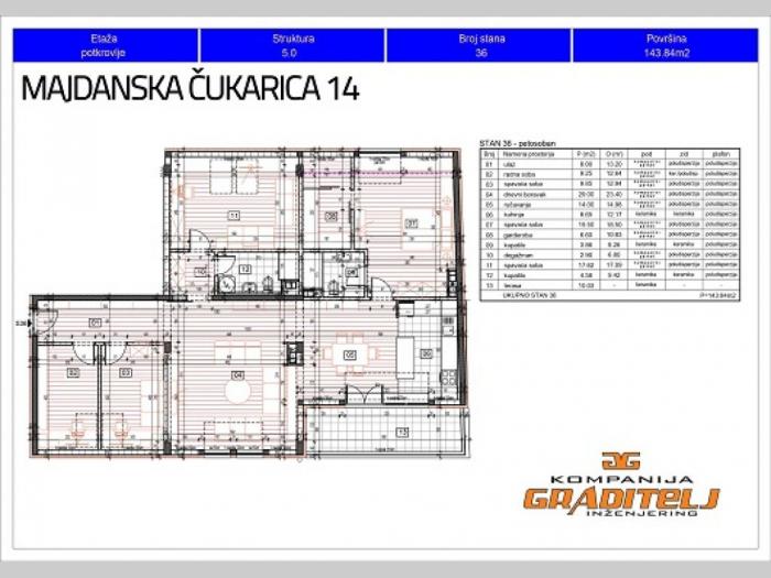 Novogradnja, petosoban 143,84 m2, Banovo brdo, Majdanska Čukarica 14