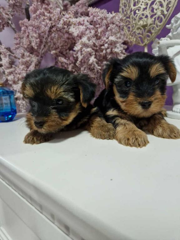 Jorksirski terijer - štenci za preuzimanje, odvojeni od majke, jedu granulice, naučeni na pelenu. Vakcinisani i oćišćeni od parazita. Malog rasta i sitne građe su.
