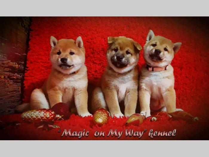 Shiba Inu štenci iz odgajivačnice "Magic on My Way" iz dve interesantne krvne linije. Ženka oštenjena 11.9.2017. (Akira Yuno of Lyurua Dyuring/Amaya Go Izumi Kohan Sou) i 2 mužjaka oštenjena 4.11.2017. (Akira Yuno of Lyurua Dyuring/Golden Star Incipita Vita). Roditelji poseduju zdravstvene serifikate. Cena: 1300-1400€ .Za ostale informacije kontaktirajte nas mejlom macuka73@gmail.com , porukom na našoj stranici www.facebook.com/shibainu.myway/.