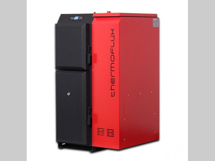 Opis artikla: Toplovodni kotao Pelling je automatski kotao na pelet za zagrijavanje porodičnih kuća, stambenih i manjih industrijskih objekata. Kotao je modernog dizajna i suvremene konstrukcije, a tehnologija sagorevanja je na visokom nivou. Termo Fluks kotao je opremljen samodozirajućim sistemom, koji prema zadanom intenzitetu samostalno dozira pelet iz spremnika u ložište. Uz pomoć ventilatora dimnih gasova stvara se podpritisak potreban za sagorevanje peleta. Povećanim intenzitetom sagorijevanja dolazi do stvaranja određene količine pepela, te se nastali pepeo obrušava u pepeljaru kotla, koja se nalazi neposredno ispod ložišta. Kad je kotao hladan, čišćenje se obavlja jako brzo. Potrebno je isprazniti pepeljaru, te ukloniti pepeo i naslage sa zidova kotla. Kotao je opremljen automatskom regulacijom, koja dostizanjem zadane temperature automatski smanjuje snagu grejanja, te održava lagani plamen (modulacija). Opadanjem temperature regulacija ponovno povećava snagu i dogreva kotao. U slučaju da, iako radi na minimalnoj snazi, temperatura u kotlu poraste za 2C preko zadane kotao će se automatski ugasiti. Nakon što temperatura u kotlu opadne, kotao će ponovo pokrenuti fazu ponovnog potpaljivanja.