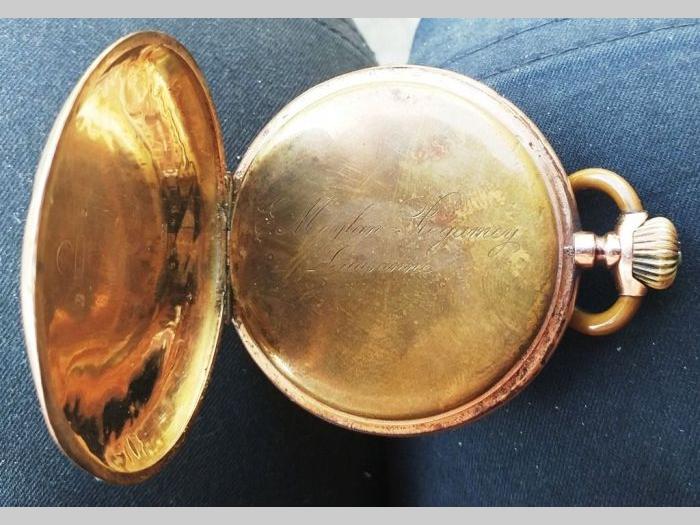 Zlatan džepni sat E. Meylan Lausanne. Džepni zlatni sat 14 karatni sa tri poklopca. Na slikama se vide svi potrebni pečati. Izrađen u Lausannu u Švajcarskoj. Na satu ništa nije menjano, niti popravljano. Sat ima sve delove i radi besprekorno i tačno. Potrebno je čišćenje. Prednji poklopac odlemljen kod šarke. Porodično nasledstvo. Ne znam ništa bliže o satu, ali znam da je vrlo vredan. Sat je kvalitetan, redak, veoma lep, očuvan, ispravan i cenjeni kolekcionarski primerak. Svi ostali detalji se mogu videti na slikama.